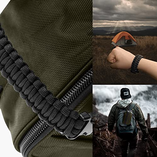 DESIGNED FOR ANY OCCASION – Tactical inspired design that not only serves you in the hotel room but also in the unknown wilderness. The side molle webbing allows you to add tools & gadgets for quick access, or even pouch for additional carry capacity. The handle is made from detachable 550 paracord and whistles for emergencies because anything can happen. Heck! We also give a FREE Tactical Carabiner.