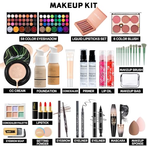 Makeup Set Makeup Set for Women Girls Teens Full Kit, Makeup Present Set for Beginners and Professionals Include Eyeshadow Palettes, Foundation, CC Cream, Liquid Lipsticks Set