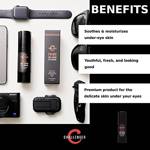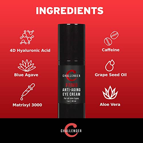 Challenger Men’s Primo – Men’s Eye Cream, Anti Aging Eye Balm – Reduce Wrinkles, Under-Eye Circles, Puffiness, Crows Feet and Signs of Age – Unscented 1 Ounce Airless Pump with Natural Ingredients
