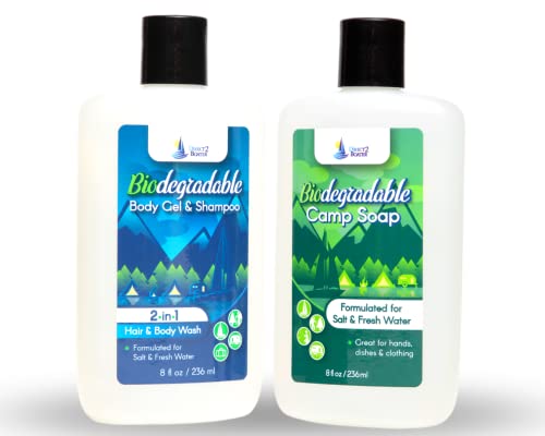 Biodegradable Shampoo& Body Wash Organic 8 oz and Camp Soap 8 oz Bottle Soap Bundle (2 Items) For Fresh & Salt Water, No Dies or Fragrances, Organic Body Wash, Travel Size Body Wash, Travel Shampoo
