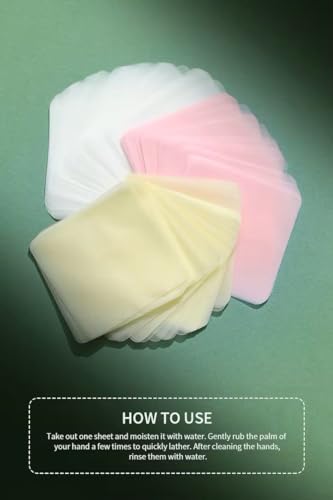 HOW TO USE – 1. Take out soap sheet; 2. Add a small amount of water wet the soap sheet; 3. Gently rub your hands to produce foam; and 4. Rinse your hands with water.