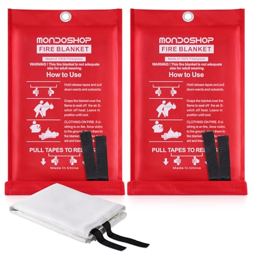 Fire Blankets for Kitchen Home Emergency – Mondoshop Fire Retardant Blanket for Home Fireproof Blanket for Camping, Grill, Picnic, Car, Office, Warehouse, School