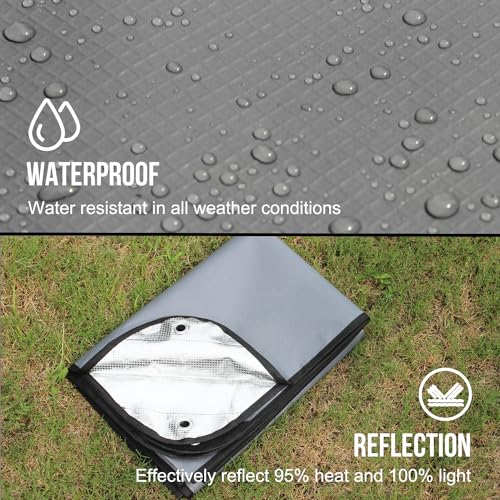 ⛺️【Reusable and Durable】Rugged 4 Layers including PE, Polyester Mesh and Aluminum Foil. Suitable for Many Situations, including Raincoat, Camping, Hiking, Mountainning, Snowfield and Heavy Duty. Also Can be Used as Car Protection, Sunshine Shelter, Pets Shelter, SOS Signal, Solar Heater for Many Times.