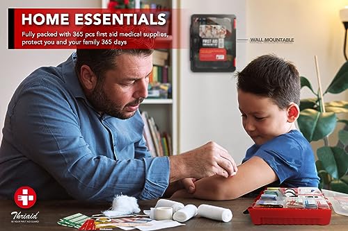 365 Piece First Aid Kit, Well-Organized Durable Hard Case, Wall-Mountable Trauma Medical Kits for Any Emergencies, Ideal for Home, Office, Car, Travel, Outdoor, Camping, Hiking, Boating (Matte black)