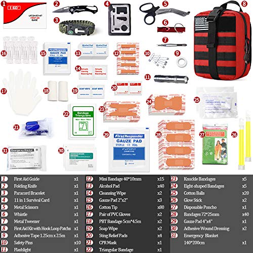 ✔【A Must-Have 251 Pieces First Aid Survival Kit】: Contains of 9 pieces practical survival gear, 238 pieces essential first aid supplies, 2 piece velcro patches and 4 in 1 military MOLLE pouch to get you well-prepared in emergency situations