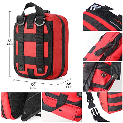✔【Durable Tactical Medic Kit】: Made of high-density 600D oxford material, tough and durable. With wide handle loop, easy to carry out. Use dual zippers, help you open the pouch from 2 ways. Organized with Tri-fold compartments, provide quick access during stressful situations and plenty of rooms to add your own items