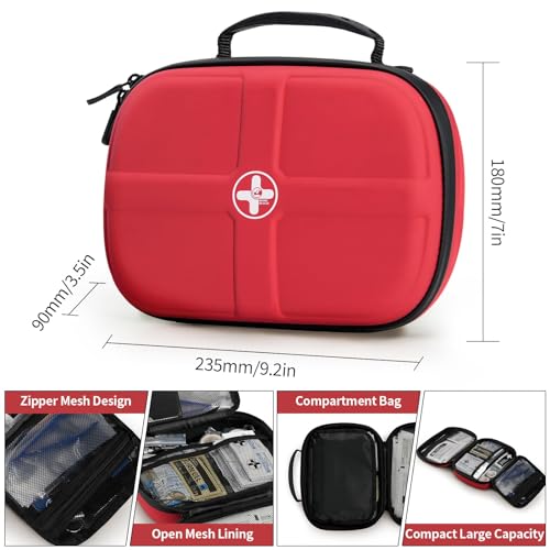 【Easy to Carry】The case measures (L) 9.2″ x (W) 3.5″ x (H) 7″, 1.8 lbs weight. The First Aid Bag features a handle design that makes it easy to take with you, whether indoors, outdoors, in the car & on travels, so you can provide prompt first aid support to your family members.