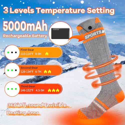 🔥【Upgraded 360°Annular Heating Area】 Compared to traditional electric heaetd socks, the VICEPLUS heated socks for men women features 360° all-around invisible heating area with precise stitching and soft embedded heating elements, so you won’t feel the wires and wear them more comfortably.