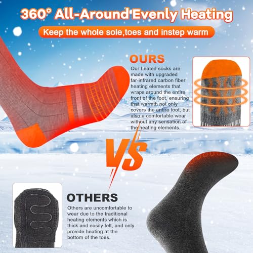🔥【Best Gift Choice】The Heated socks for women washable is suitable for many winter outdoor activities such as skiing, hiking, fishing, hunting, biking and more. Not only can help you keep the feet warm, but also promote blood circulation and reduce soreness. Best gift choice for your family and friends, giving warmth to the people you love.