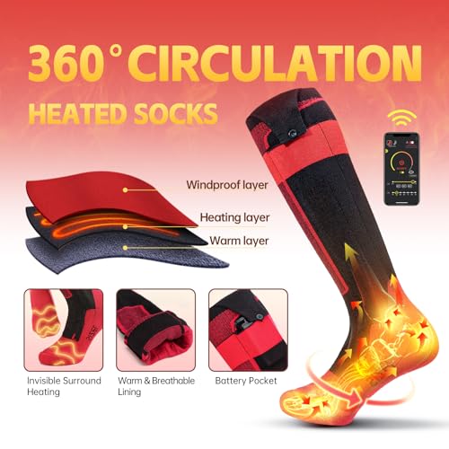 Heated Socks, Rechargeable 10000mah Battery Heated Socks for Men Women, Upgraded Washable Electric Thermal Warming Socks, App Control Winter Feet Warmer for Camping Hiking Skiing Outdoors
