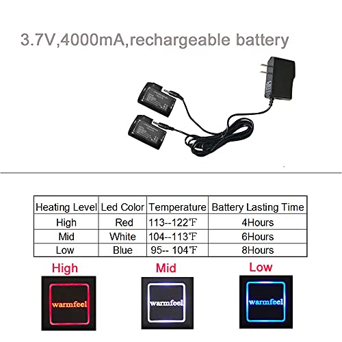 2.Three Heat Level .You can change different level from level 1-3. These electric heated socks meet your thermal needs at different temperatures, high heat (red, 122°F), medium heat (green, 113°F), and low heat (blue, 95°F), one simple button for operation can meet most people’s need perfectly .