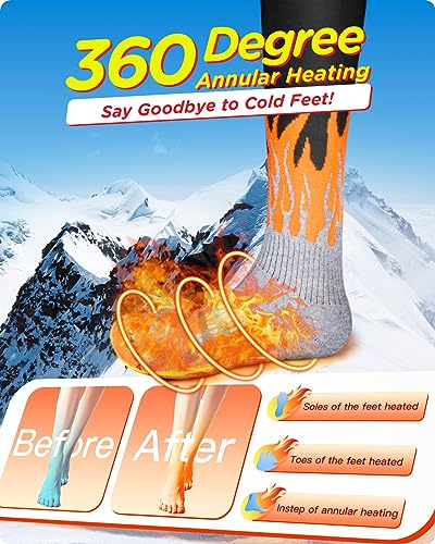 Rechargeable Heated Socks for Whole Sole, Toes and Instep, 5000 mAh Battery Powered Warm Socks for Up to 10 Hours, XL Large Thermal Heated Socks Women and Men for Camping|Hiking|Skiing|Hunting|Unisex