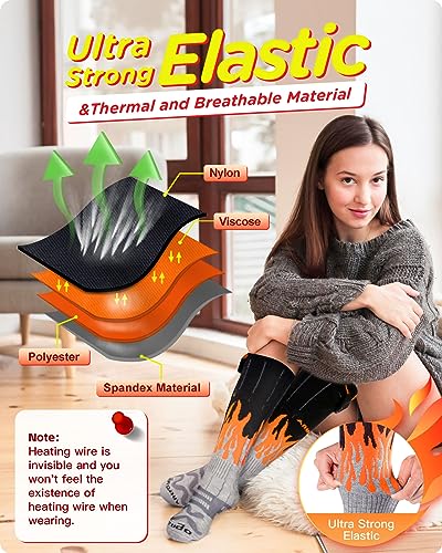 【Soft Breathable Material】 Warm Socks is made with 52.5% nylon, 22.5% viscose, 10% polyester and 15% spandex material. The electric socks with superior moisture wicking ability can prolong socks life and enhance comfort for you. Make your icy feet dry, comfortable and warm in cold winter.