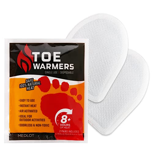 Air-activated, long-lasting heat. MEDLOT toe warmers bring instant heat to your feet and toes. Attach to socks or inside shoes. Up to 8 hours of soothing warmth. TSA approved & odorless. Great gift for winter months.