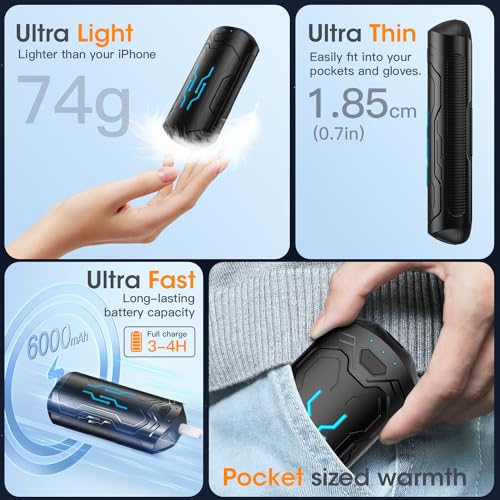 【Safety Certified & Premium Quality】Certificated with UL, CE, and FCC.The 2023 upgraded portable handwarmers have multiple protection technologies and built-in UL certified batteries. Hand warmers are made of high-tech aviation-grade aluminum and ABS material, thousands of polished exterior materials, easy to hold, warm and smooth, portable and compact, bringing warmth all day long.Making you and your loved ones safer and warmer.