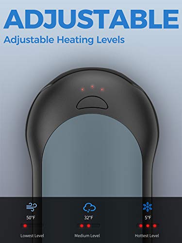 8-15 hrs Using time: Uses a modern gray-and-black design that exterior resembles supercar. Inside that modern aesthetic, you’ll find a formidable 10,000mAh rechargeable hand warmer offers you with up to 8-15 hours of warmth in cold winter, outpace your mates.