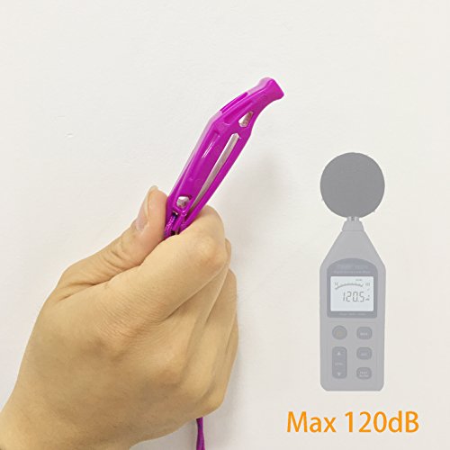 120 DECIBLE, two sound chambers design, high pitched noise maker, audible over 1 mile, easier to be heard, work great as signal whistle.
