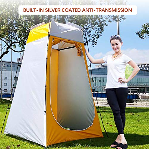 Versatile Design Shower Tent: This portable privacy tent is perfect for a variety of outdoor activities including as an outdoor toilet, shower tent, changing/dressing room, camping/fishing shelter. It is ideal for use in open fields, beaches, woods, travel, gaming, gatherings, and show activities. The enclosed roof design ensures maximum privacy.