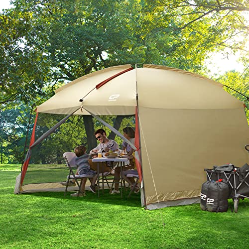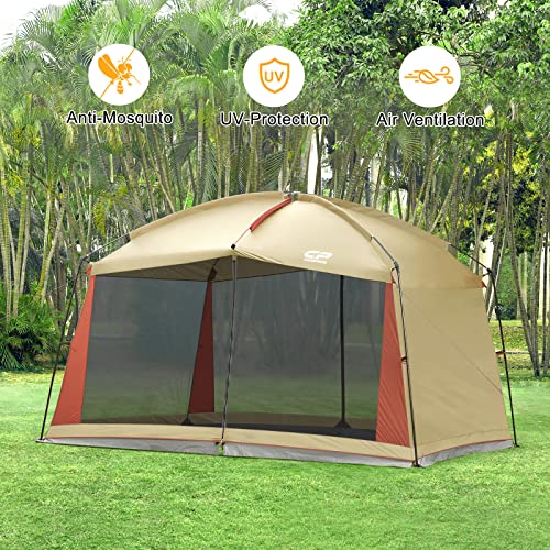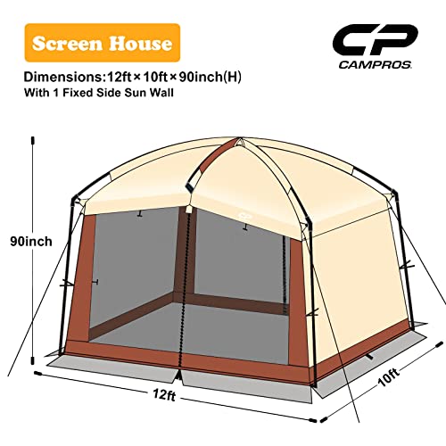CAMPROS CP Screen House Room with 1 Side Wind/Sun Panel Canopy Tent Camping Tent Screen Shelter Gazebos for Patios Outdoor Camping Activities, 12’X10’X90in(H) – Beige
