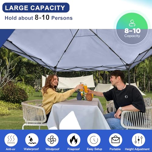 👉【10×10 FT LARGE CAPACITY】Our outdoor 10ft pop up canopy provides 100 square feet of shade for about 10-14 people. 3 adjustable heights up to 9ft from floor to roof.