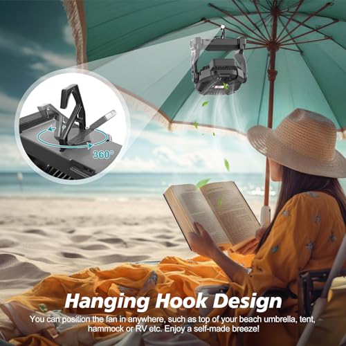 【Hanging Anywhere & Durable】: The usb battery powered fan is equipped with hooks in the bottom, it allows for effortless hanging from a variety of structures including tents, umbrellas, and hammocks. 270° rotation adjustment, more flexibility, enabling you to direct airflow precisely where it’s needed, enhancing the overall comfort of your space and it standing up to the challenges presented by outdoor.