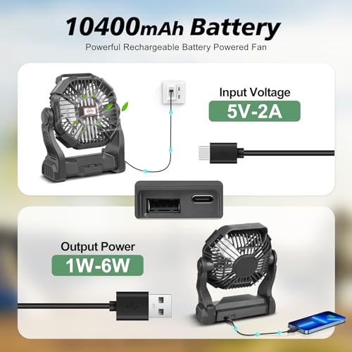 【Prolonged Performance】: The rechargeable camping fan is powered by a robust 10000mAh battery, small but mighty cordless fan keeps the air flowing for up to 36 hours on low speed, ideal for camping trips, unexpected power outages, or even during extreme weather conditions like hurricanes. In addition, the small usb fan also supports working while charging.